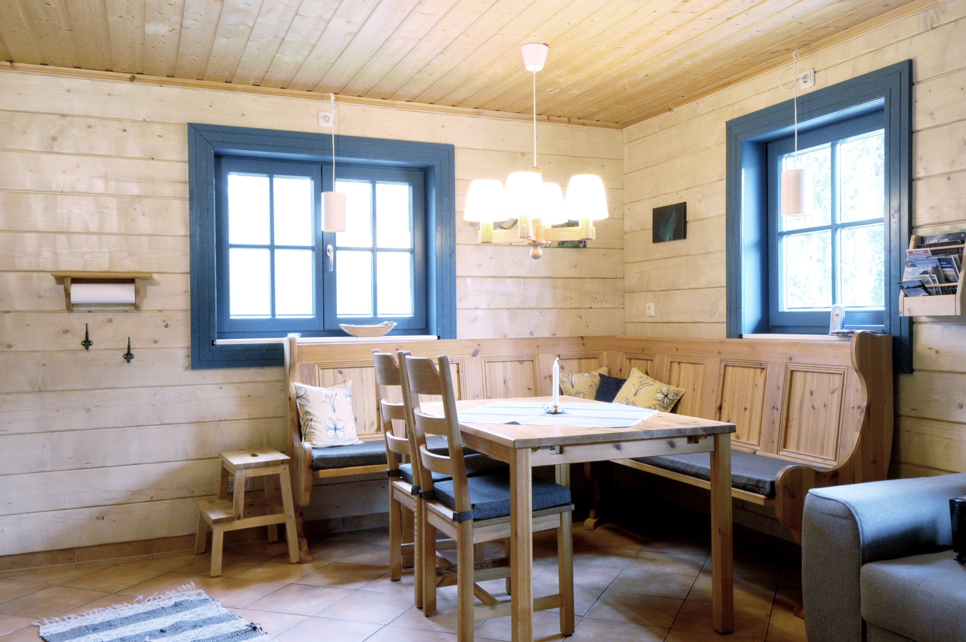 Das Blockhaus "Ull" hat eine Wohnfläche von 50 qm und ist sehr gut für 4 bis maximal 5 Personen geeignet. Das Haus hat 2 getrennte Schlafzimmer sowie ein modernes großes Badezimmer. Die komfortable Wohnküche ist voll ausgestattet und an den Essbereich mit Kaminofen angegliedert.