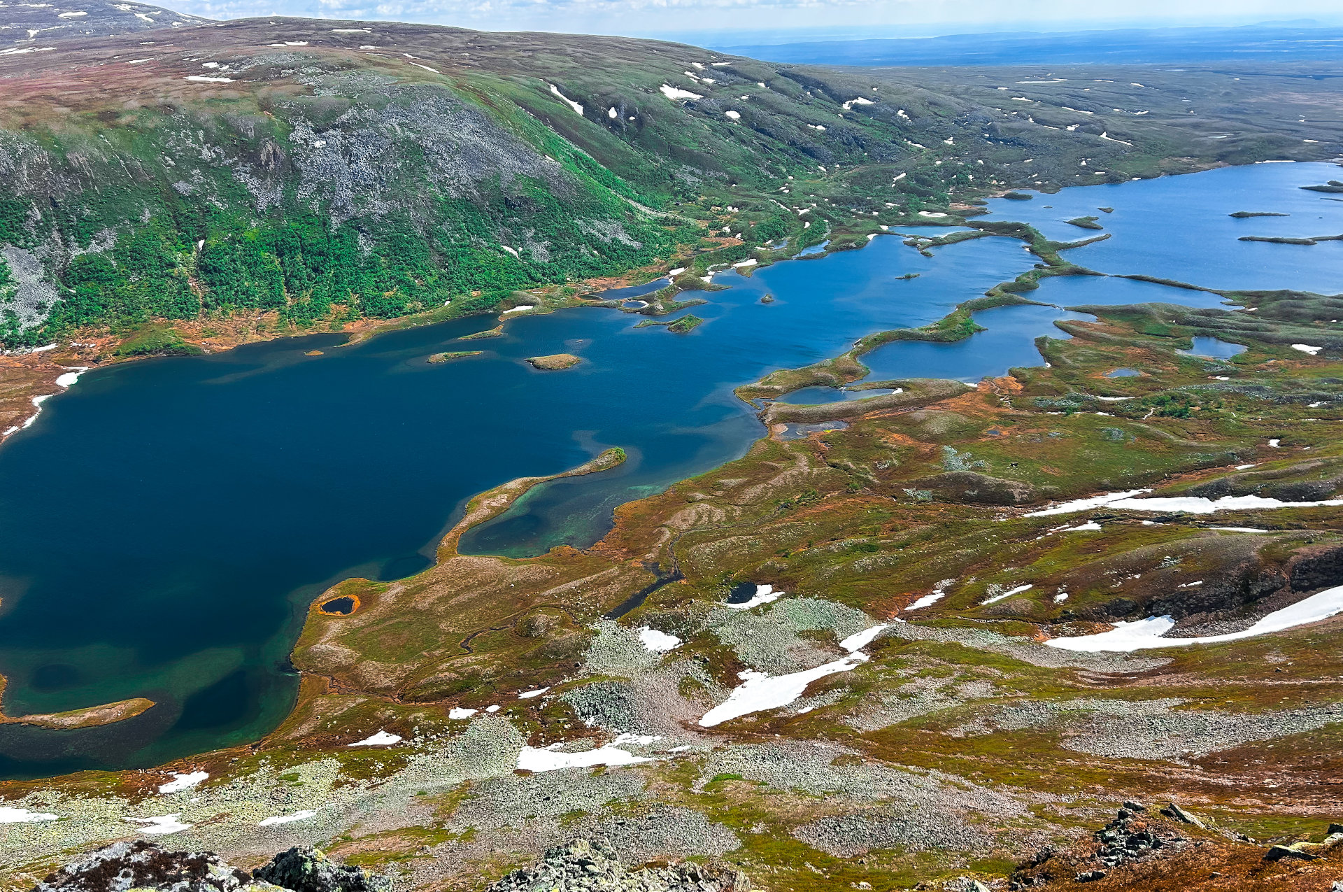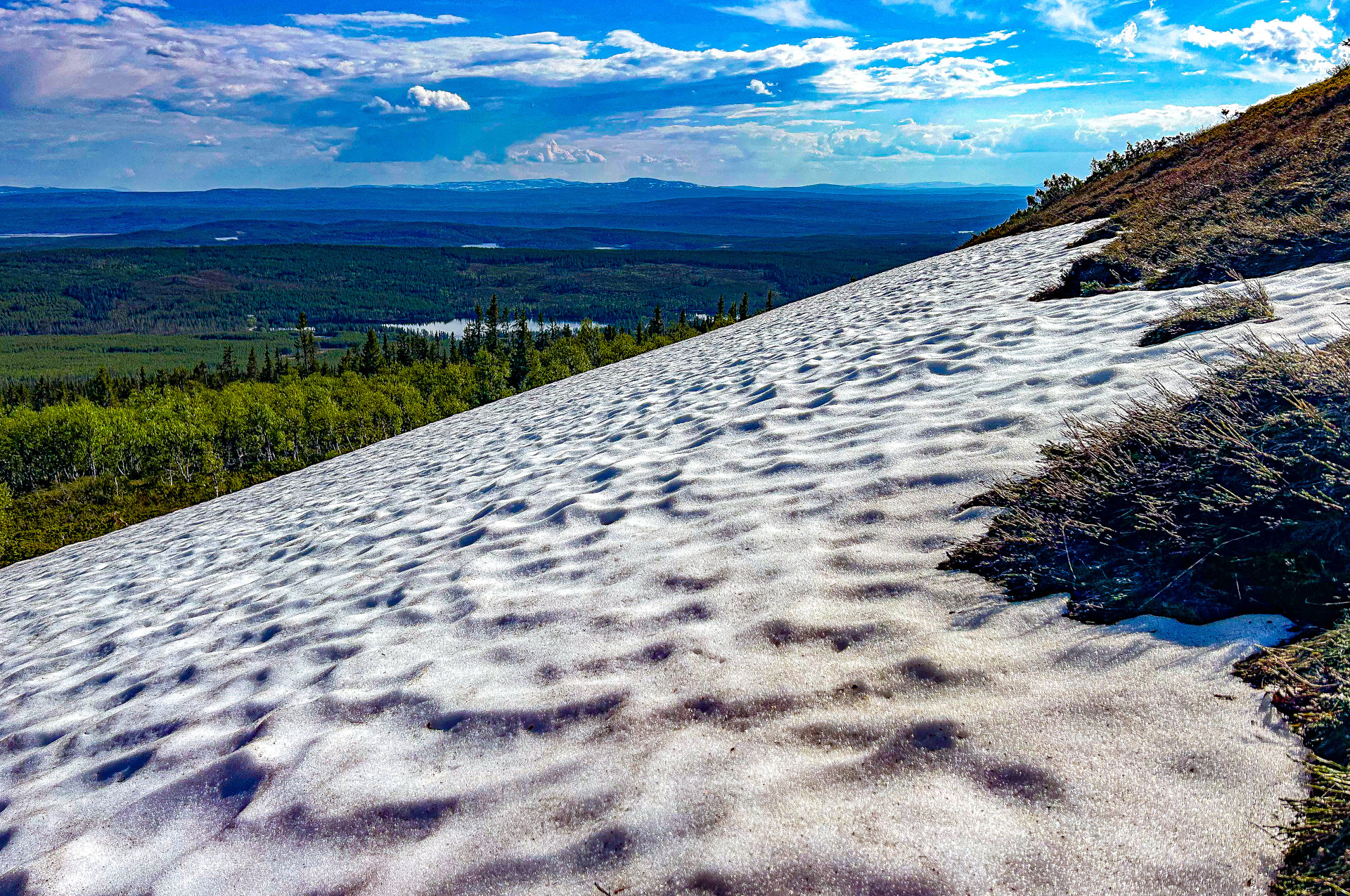 Auch im Sommer kann man noch Schneereste von den meterhohen Schneewächten in den Bergen in Schweden finden