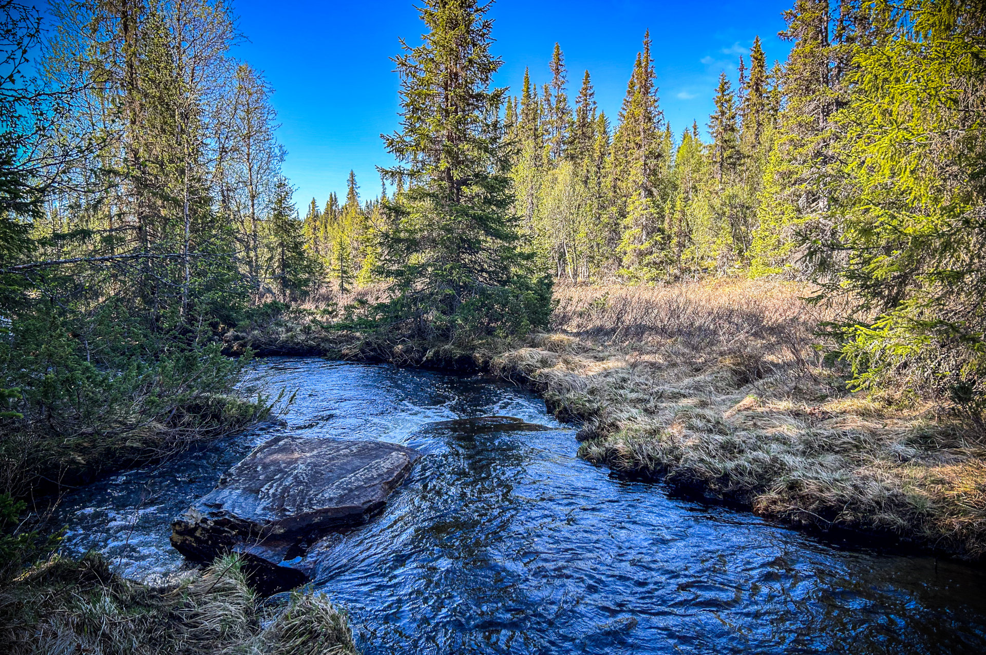 Der Natustig am Galå Fjällgård verläuft am Bach entlang
