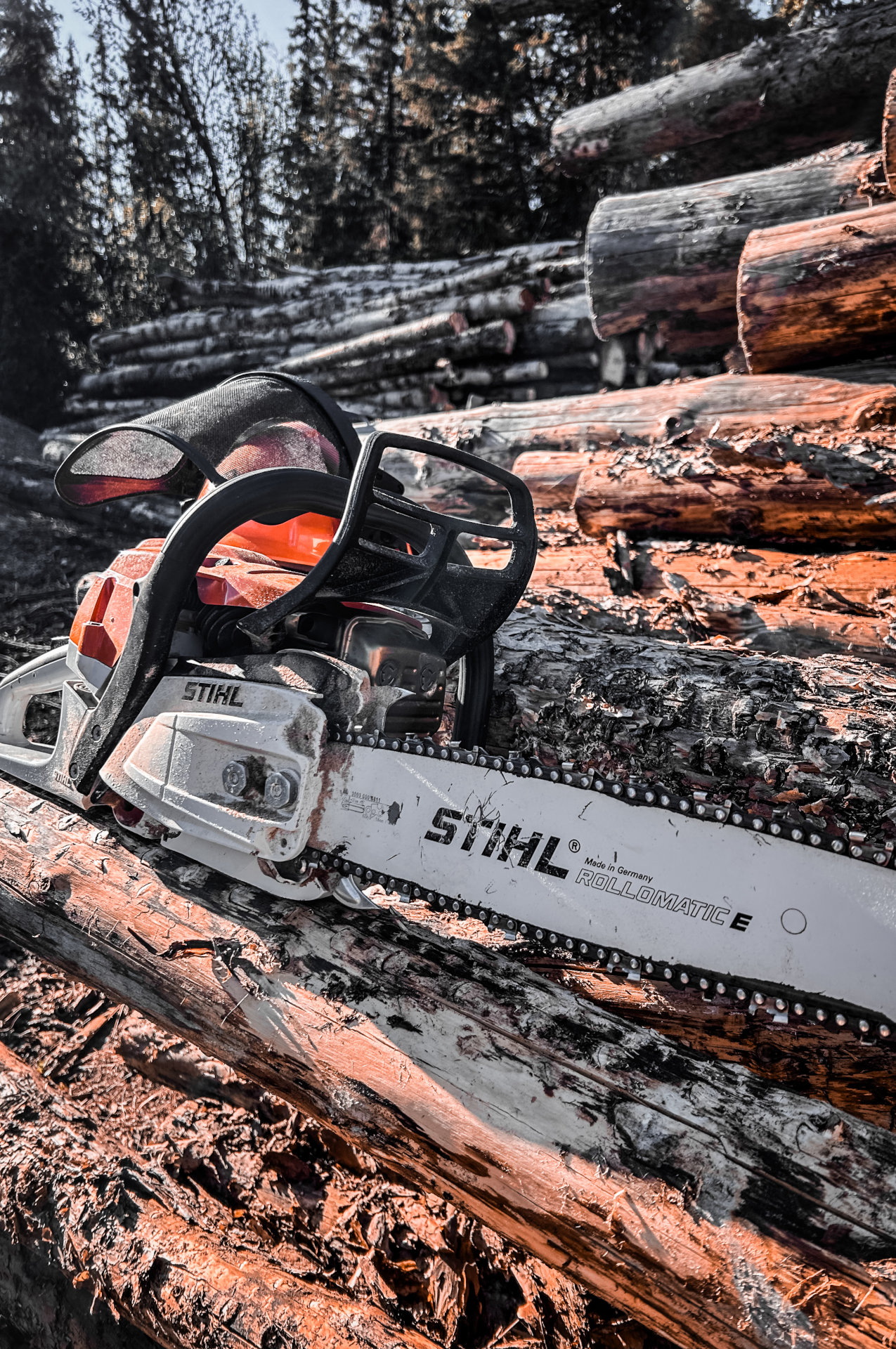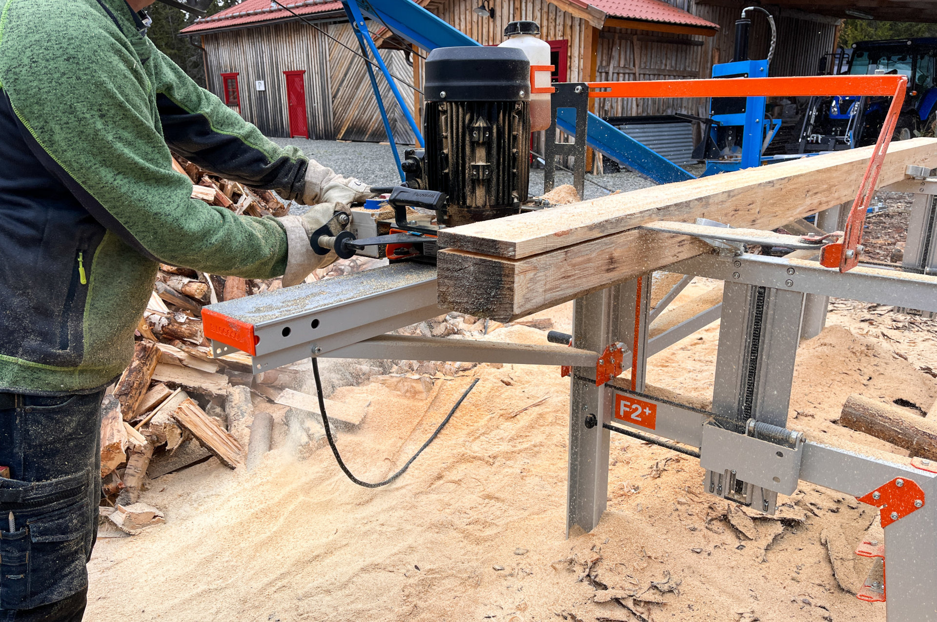 Bretter aus Kiefernholz sägen mit dem Logosol F2+ Sägewerk und der Elektrosäge