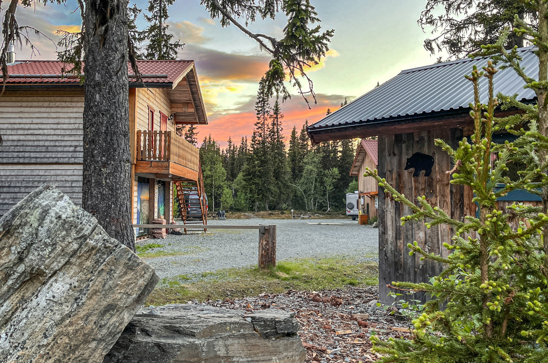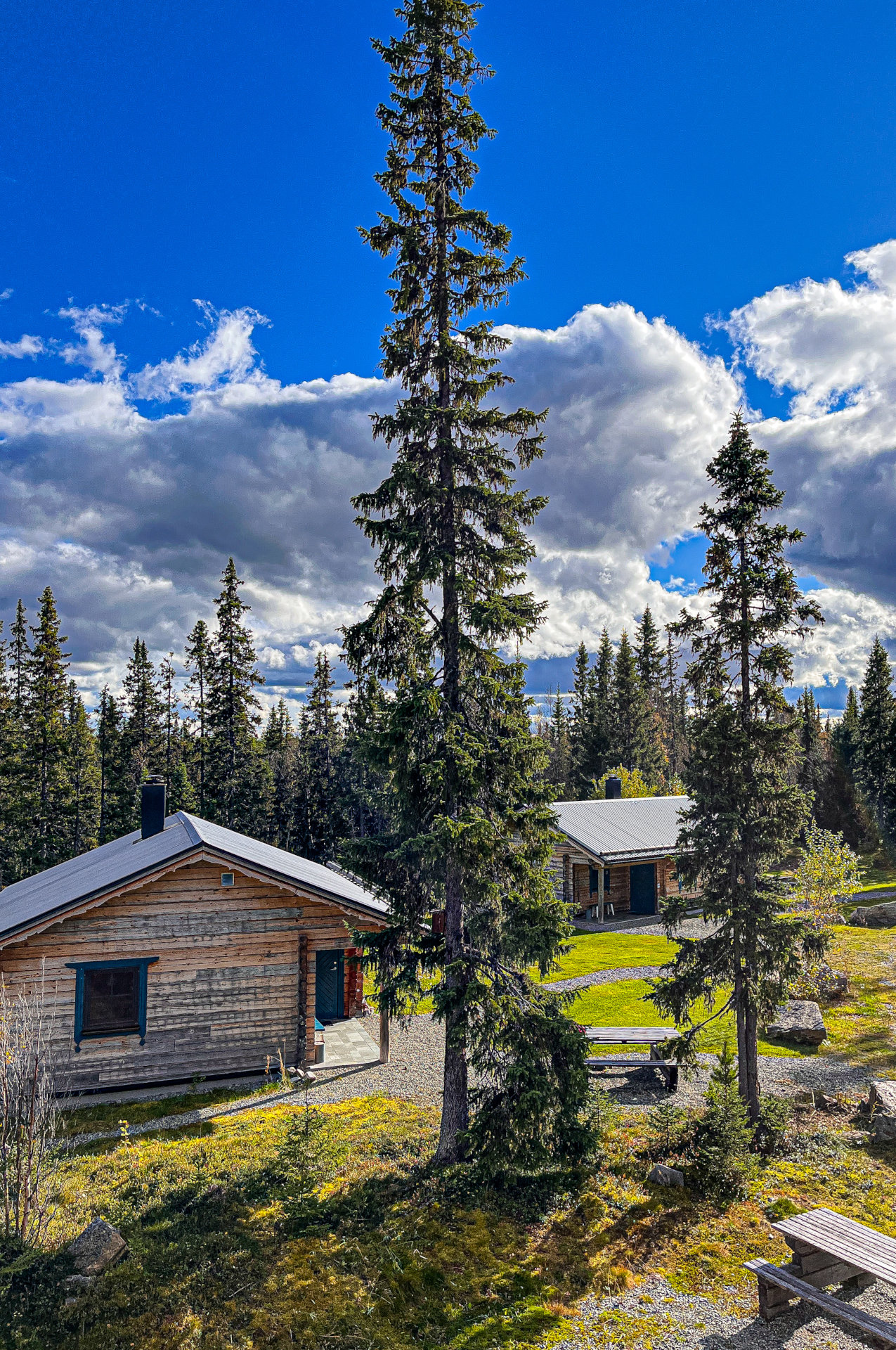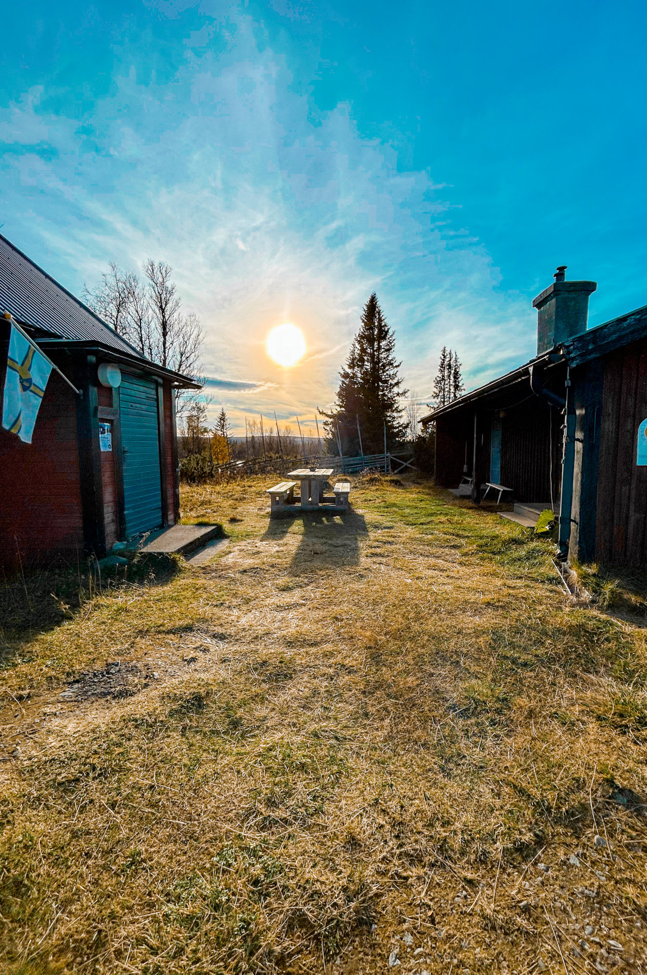 Ferien auf der Alm in Galåbodarna. Hier sind nur die Almhütten vom Ort selbst zu sehen.