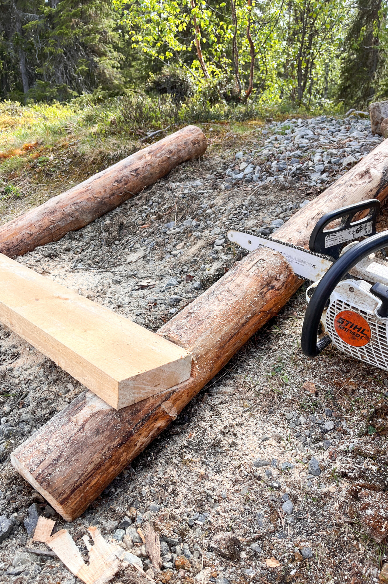 Eine kleine neue Holztreppe an der Böscung am Campingplatz mit der Stihl Motorsäge bauen