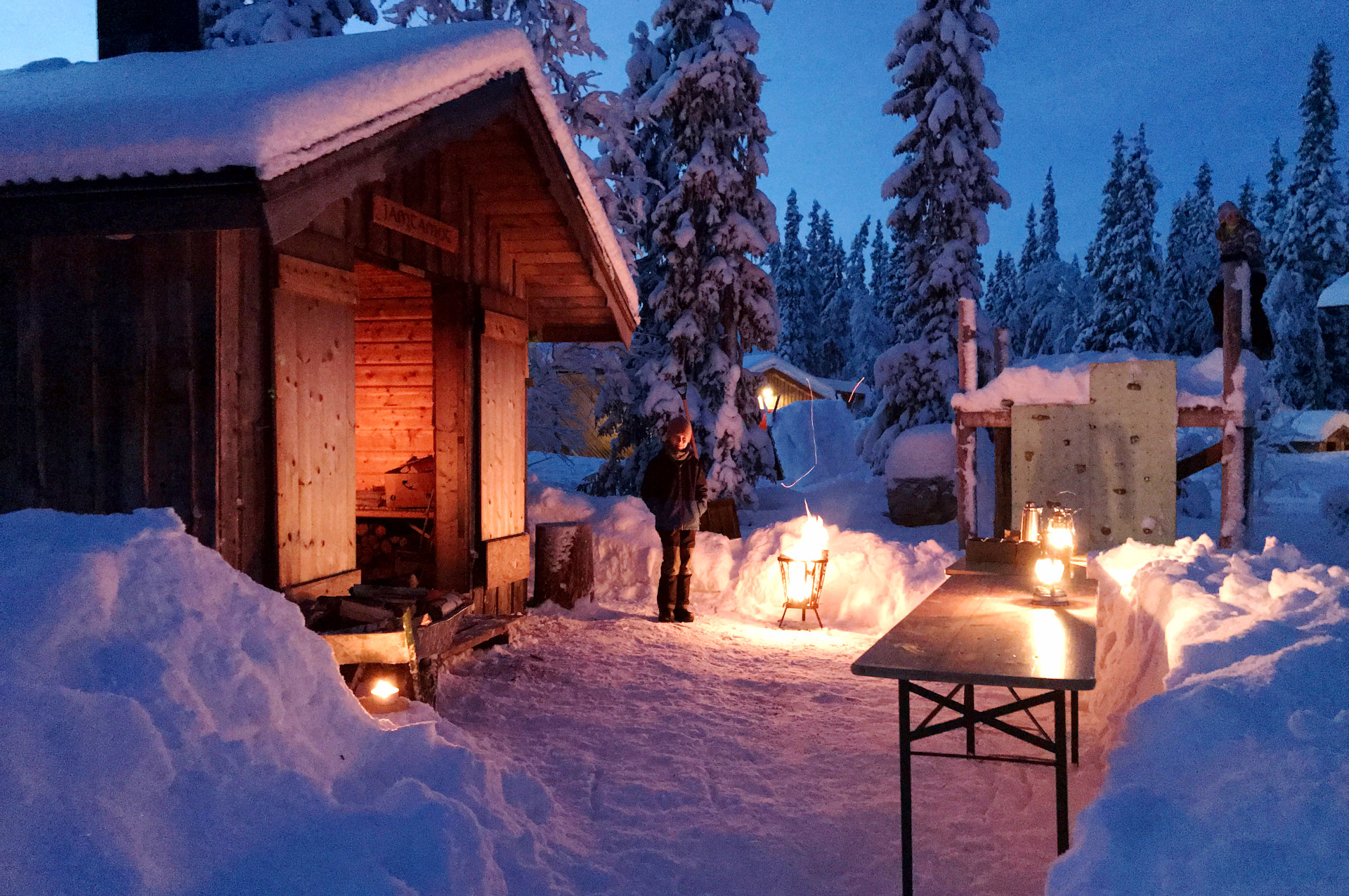 In dunklen Nächten erstrahlt die Grillkota mitunter auch im Kerzenschein. Nicht nur an Weihnachten und Silvester, sondern auch an vielen Winterabenden kann man hier sitzen und auf die Polarlichter warten.